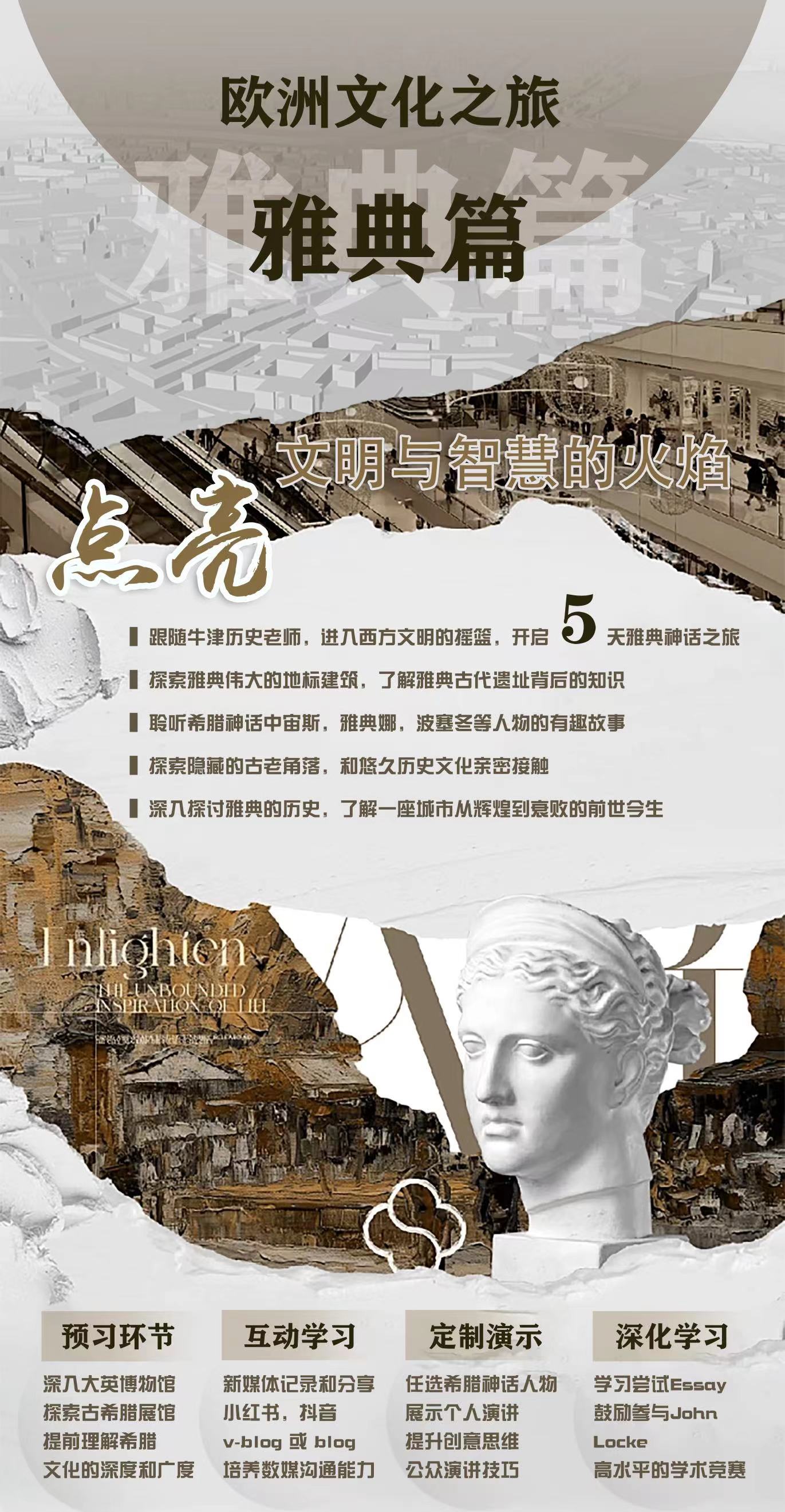 定制演示:任选希腊神话人物展示个人演讲,与老师和国际生交流,提升创意思维及公众演讲能力。