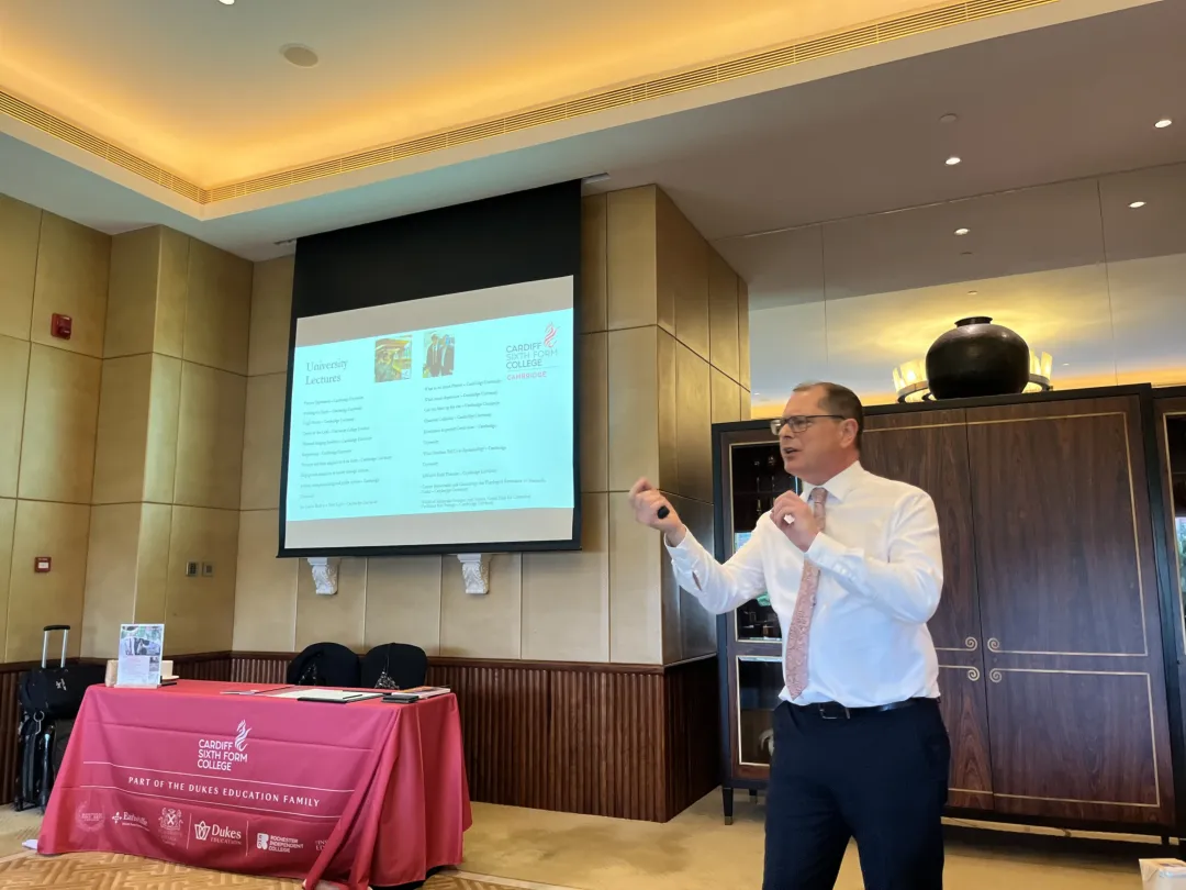 昨日,LFO 的申请团队和家长受卡迪夫学校Cardiff Sixth Form College(CSFC)的诚挚邀请,参加了其剑桥校区校长Dr. Julian Davies的专场招生见面会。Dr. Julian以其在英国学术领域的资深经验,为在场家庭带来了一场关于如何冲刺牛津、剑桥等全球顶尖大学的深度分享。